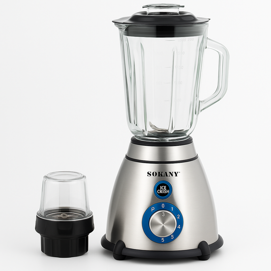 Licuadora Eléctrica 1.5 Litros 800W Vaso de Vidrio + Triturador Sokany