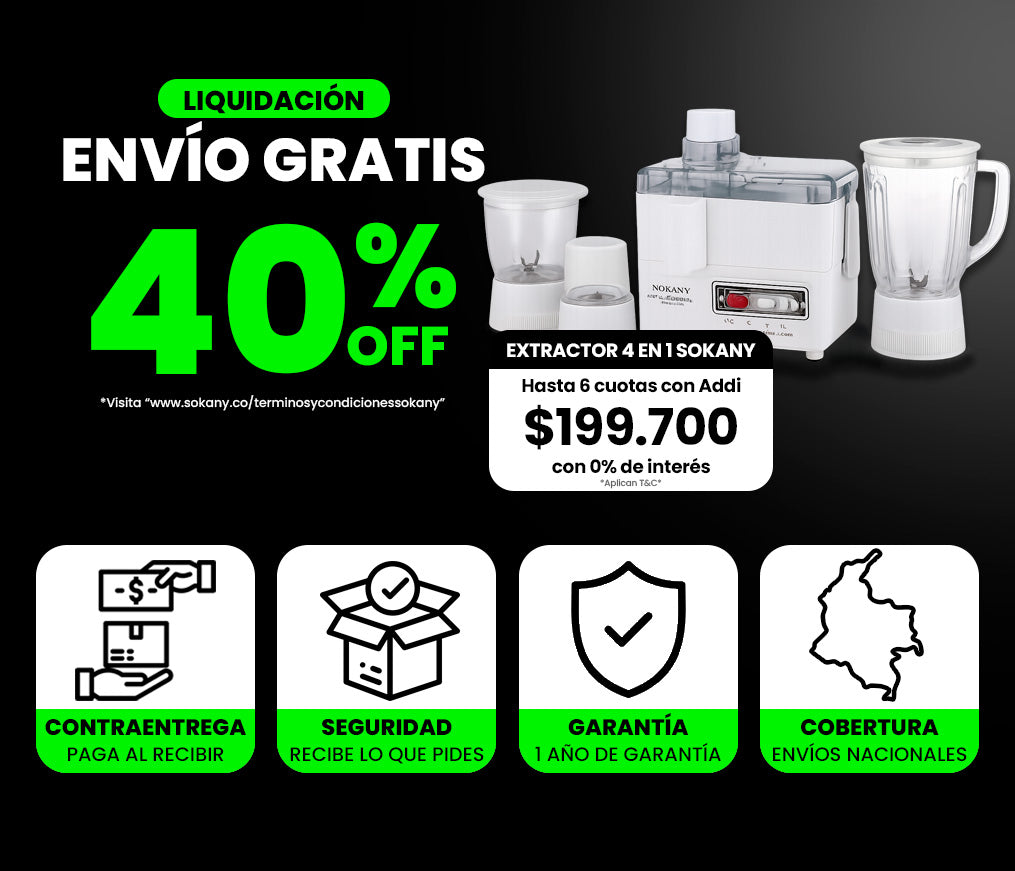 Licuadora Sokany® 5 Velocidades 1.5 Litros de 800W de Potencia + Vaso Triturador