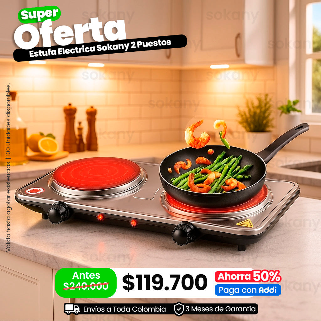 Estufa Eléctrica De 2 Puestos 2000w Sokany